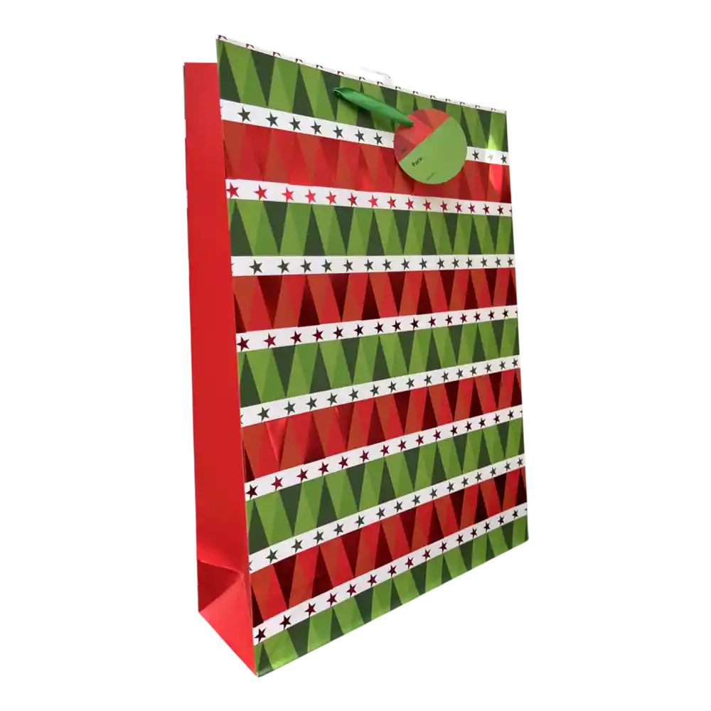 Bolsa de regalo Nico Premium con terminados especiales y tarjeta de para con diseños exclusivos para navidad. Medidas: 32 de ancho x 44 de alto x 10 fuelle cm