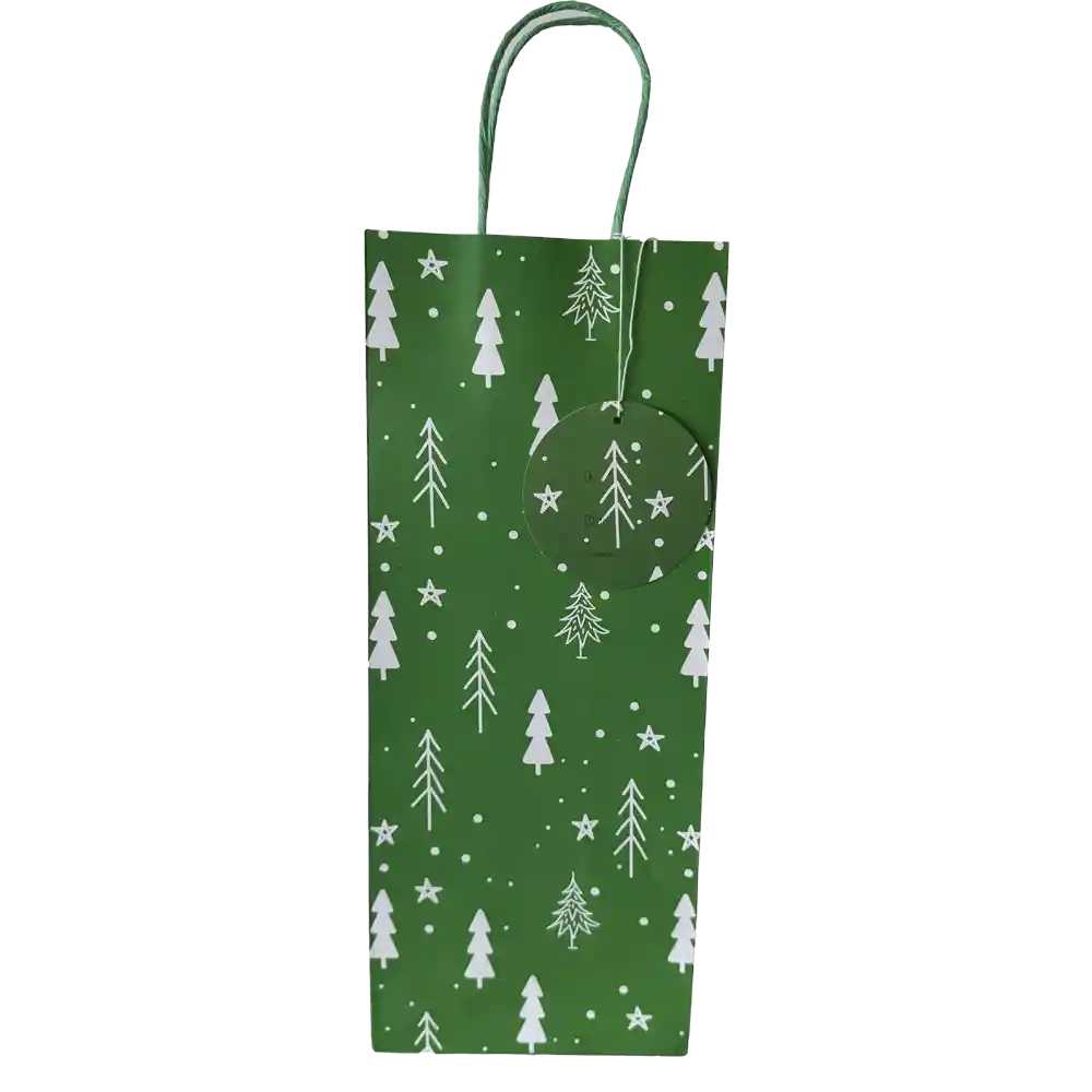 Bolsa de regalo marca Nico en papel kraft con terminados especiales y diseños exclusivos de navidad Medidas: 14,3 de ancho x 36 de alto x 10 fuelle cm Todas nuestras bolsas contienen tarjeta de para, terminados especiales en escarcha, estampados o terminados mate. Cuentan con bases y asas de refuerzo.
