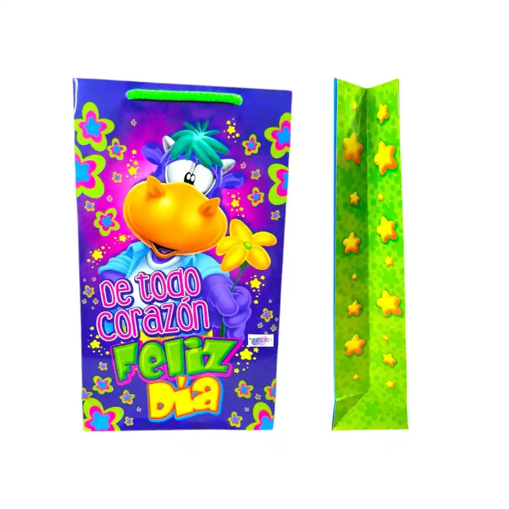 Bolsa de Regalo Decorada Pequeña Incluye: 1 bolsa de regalo Medidas: 28 x 16 cm Su diseño decorativo la convierte en una opción perfecta para ocasiones especiales como cumpleaños, aniversarios, amor y amistad, navidad y muchas otras celebraciones. Son fáciles de usar y requieren menos tiempo que el papel de regalo tradicional. Simplemente colocas el regalo dentro de la bolsa, añades un poco de papel de seda o confeti si lo deseas, y cierras la bolsa con una cinta o una etiqueta.