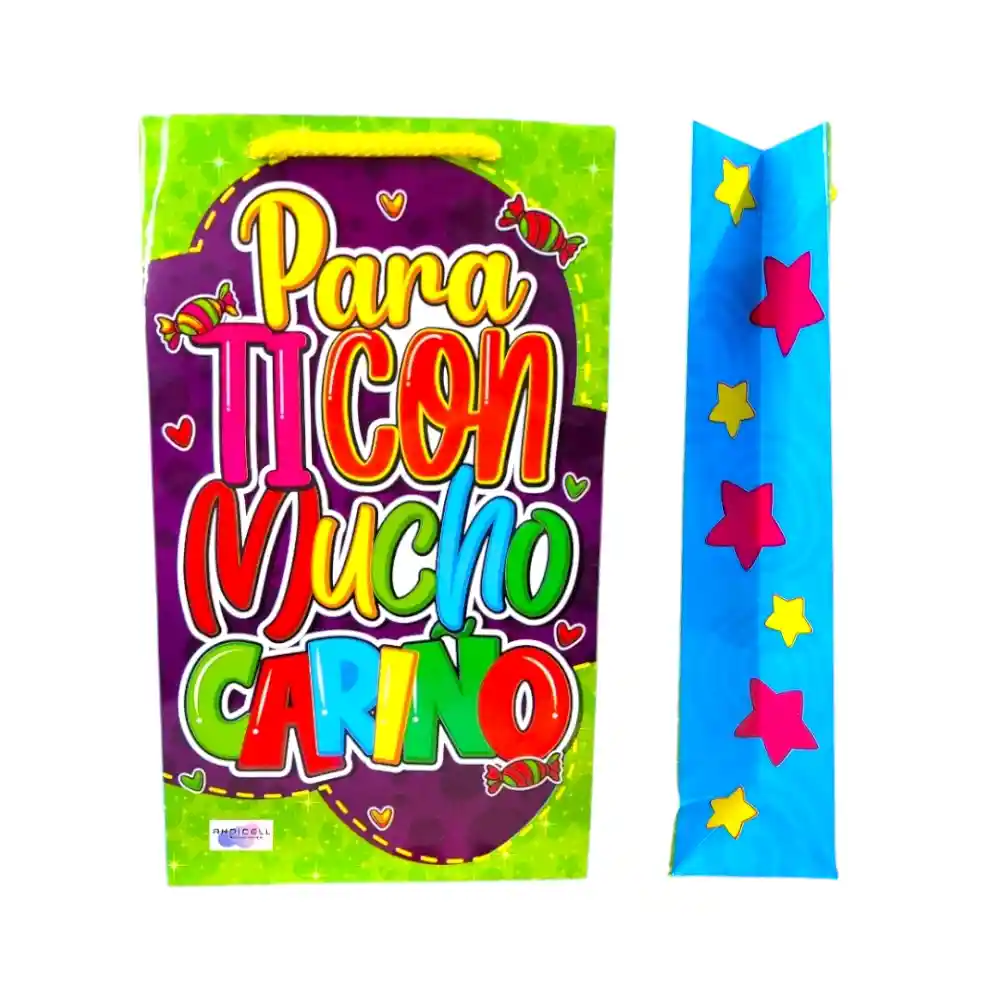 Bolsa de Regalo Decorada Pequeña Incluye: 1 bolsa de regalo Medidas: 28 x 16 cm Su diseño decorativo la convierte en una opción perfecta para ocasiones especiales como cumpleaños, aniversarios, amor y amistad, navidad y muchas otras celebraciones. Son fáciles de usar y requieren menos tiempo que el papel de regalo tradicional. Simplemente colocas el regalo dentro de la bolsa, añades un poco de papel de seda o confeti si lo deseas, y cierras la bolsa con una cinta o una etiqueta.