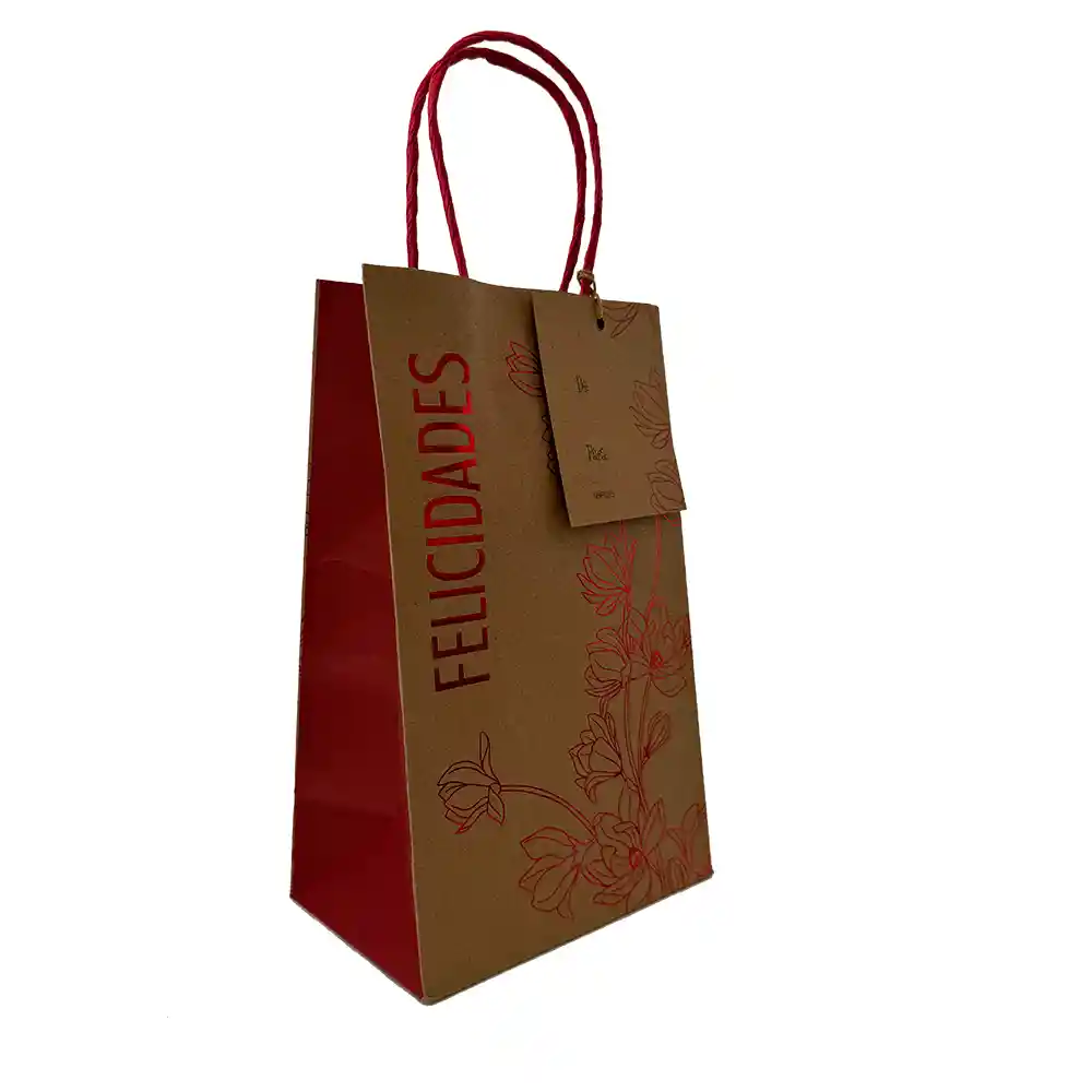Medidas: 13 de ancho x 20,8 de alto x 8 fuelle cm Bolsa de regalo elaborada en papel kraft con acabados especiales, escarcha, mate o estampados. Contiene tarjeta de para y asas resistentes para transportar tus regalos con seguridad.