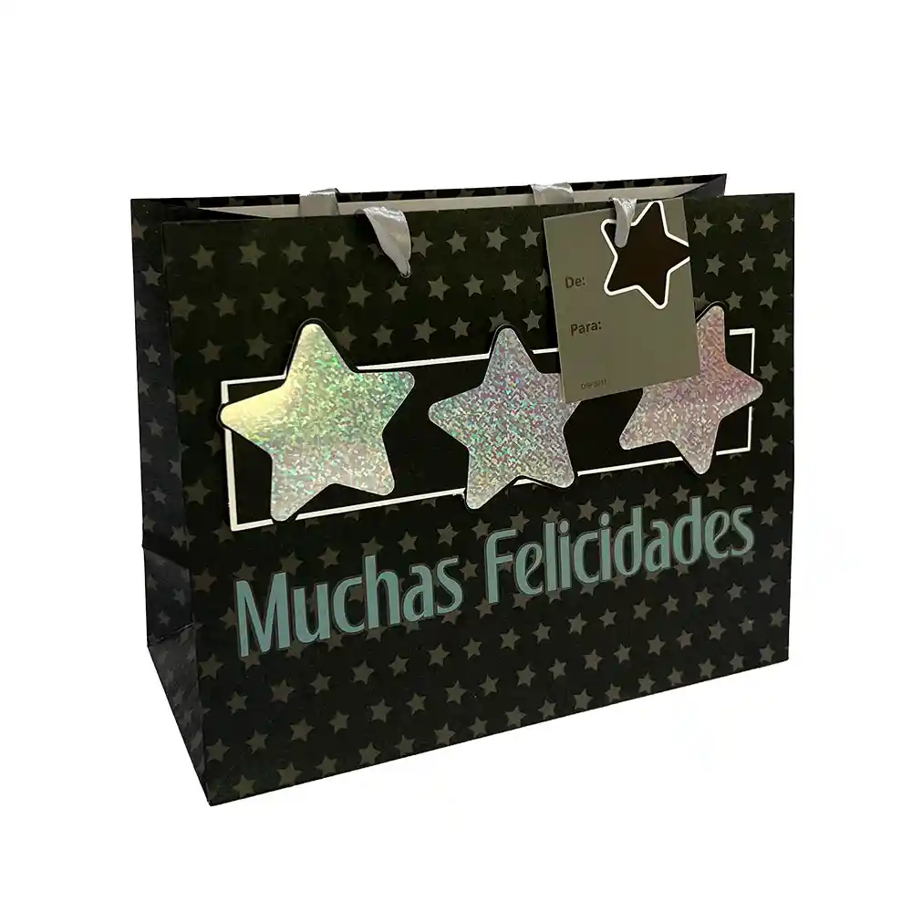 Medidas: 22,3 de ancho x 17,5 de alto x 9,5 fuelle cm, ACABADOS: Plastificado mate, escarchado Tarjeta de para