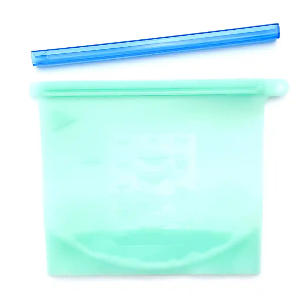 Bolsa de almacenamiento de silicona de grado alimenticio hermético. resellable. reutilizable. Apta para lavaplatos. microondas. agua hirviendo. congelador (se recomienda colocarlo en posición vertical) y apto para horno hasta 400F ó 200°c (sin el sellador de seguridad). BPA freeAguanta temperaturas entre -50°c a 200°C.LavableCapacidad: 500ml.Dimensiones: 14.5x19cm. Color: puede llegar de cualquier color.