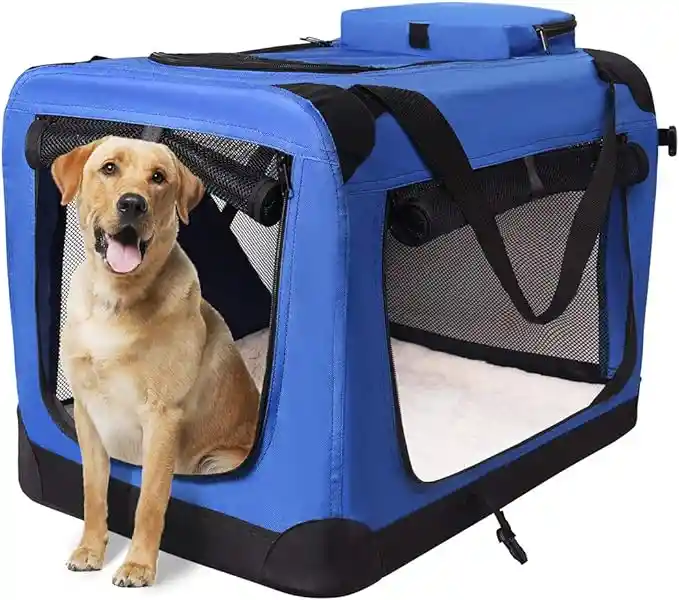 Transportin bolsa de transporte de mascotas plegable para perros y mascotas ideal para paseos y viajes largos. Estructura robusta de acero muy practico para el transporte de perros pequeños, cachorros, gatos y otros animales pequeños, con 3 entradas.Se pliega completamente para el almacenaje o para llevar de viaje. Características: El modelo esta equipado con dos bolsillos para las golosinas El acolchado se puede quitar fácilmente para su limpieza Incluye un colchon extra suave La mascota puede entrar comodamente tanto desde el frente y del costado 3 Entradas Estructura de tubos de acero con recubrimiento de polvo El material es repelente al agua