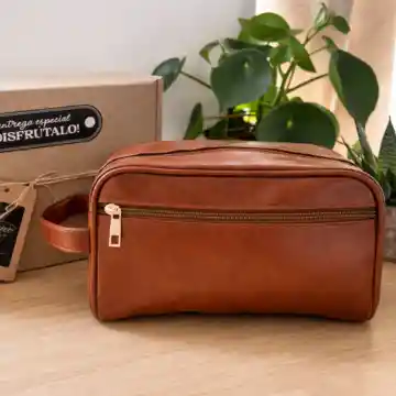 Bolsa de viaje para hombre tipo neceser, fabricada en material PU de acabado vintage, compacta y resistente, con dimensiones de 22.86 x 13.97 cm, ideal para organizar artículos de aseo personal de forma práctica en viajes, vacaciones o desplazamientos de trabajo su diseño funcional permite fácil almacenamiento y transporte, siendo una opción versátil también para uso diario o como regalo.