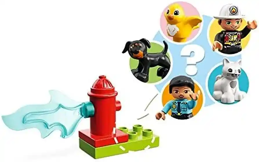 Abre la bolsa para revelar una figura LEGO DUPLO o un animal de rescate, más un ladrillo adicional y una boca de incendios para agregar a su colección DUPLO ¿Encontrará un oficial de policía, bombero, perro, gato o un pájaro? Numero de Piezas 4.nn Garantía del vendedor: 1 meses
