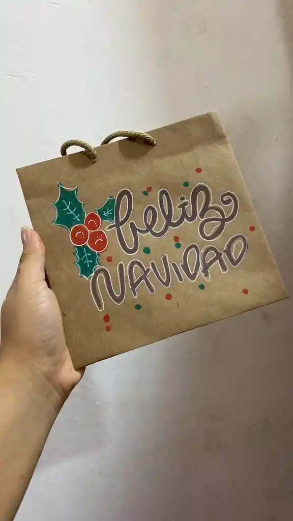 Bolsa Kraft Navideña Cuadrada Pequeña Tamaño: 17.5 x 17 cm aprox