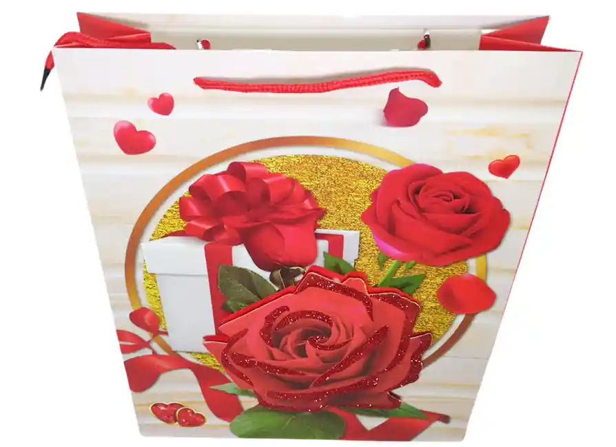 Somos Inversiones MAZUGI BOLSA DE REGALO MEDIANA PARA SAN VALENTÍN Hecha de cartón Tiene relieve Medidas Alto: 32cm Largo: 26cm Ancho: 10cm