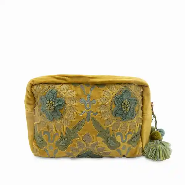 Bolsa Para Cosméticos en Algodón Con Hermoso Diseño Bordado de Flores Color Mostaza Estuche Para Organizar Maquillaje Mantiene Todos Los Productos de Aseo Personal en un Solo Lugar Listos Para Salir de Viaje.