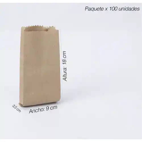 BOLSA PAPEL KRAFT DE 1/2 LIBRA 9X20X5 PQTE X 100 UND