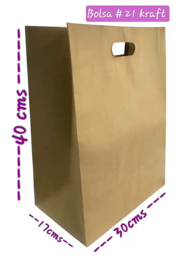 BOLSA KRAFT CON MANIJA TROQUELADA 30X40 CMS BASE 17 CMS BASE ANCHA ÓPTIMA PARA DOMICILIOS DE RESTAURANTES IDEAL TAMBIEN PARA BOUTIQUES, PARA PRENDAS DE VESTIR ESPACIOSA
