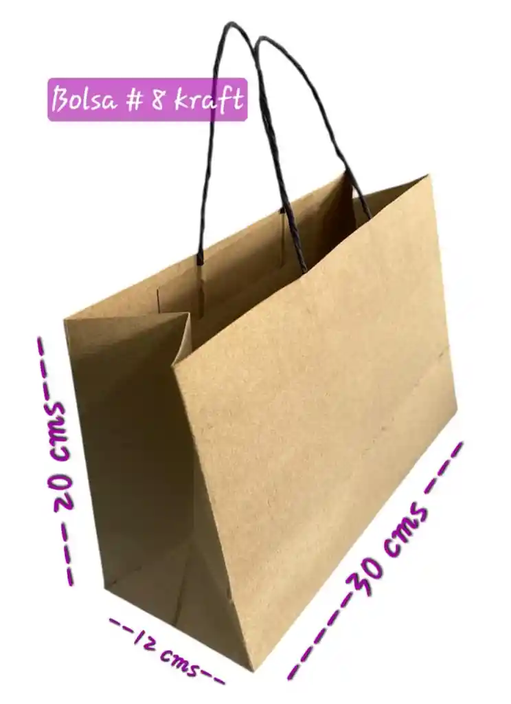BOLSA KRAFT CON MANIJAS EN PAPEL ENTORCHADO, TAMAÑO RECTANGULAR 30 ANCHOX20 CMS ALTURA Y 11.5 CMS DE BASE , KRAFT EN 120 GRAMOS TIPO T-LINERS. EXCELENTE CALIDAD Y BUENA RESISTENCIA