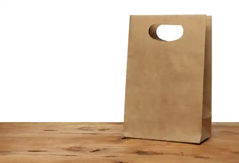 Bolsa papel Kraft mediana. Largo: 24.5 cm Ancho: 19 cm Fuelle: 8 cm