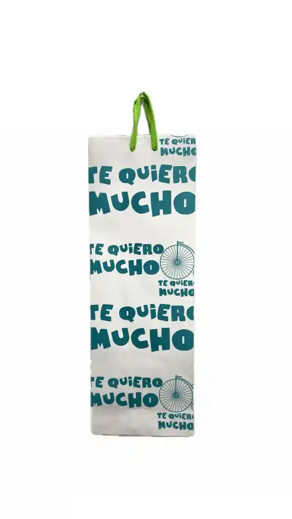 Sorprende con nuestra Bolsa para Botella Verde "TQM". Con medidas de 40 cm de alto x 13 cm de ancho, brinda un toque especial y cariñoso a tus regalos. ¡Ideal para expresar afecto con estilo!