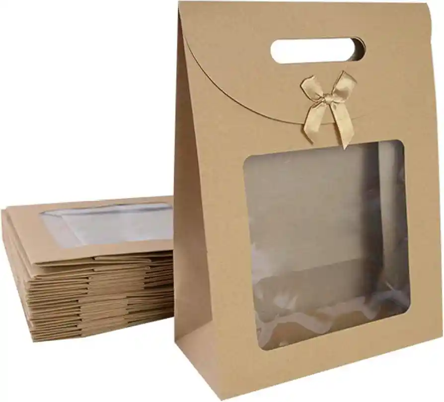 BOLSA REGALO CON MOÑO Y VENTANA 14CMX20CMX7CM COLOR KRAFT