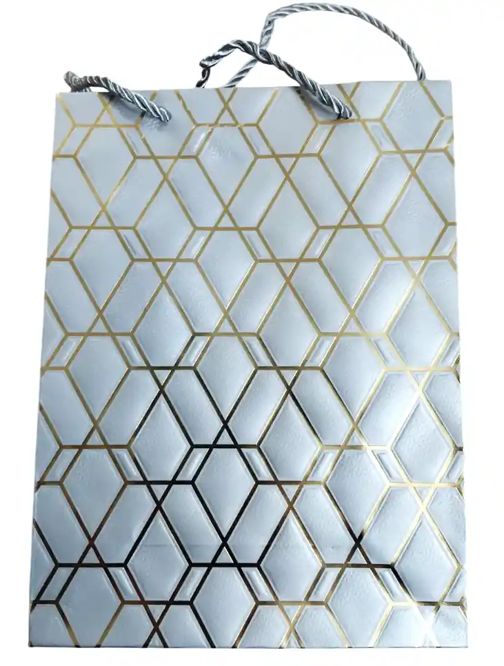 Tamaño mediano: perfecta para obsequios como perfumes, libros, accesorios, ropa pequeña, etc. Diseño surtido "Toda Ocasión" con patrón de hexágonos. Medidas: 18,5 cm (ancho) x 8,5 cm (fuelle) x 24 cm (alto). Material resistente y de excelente calidad. Incluye asas de cordón para fácil manejo.