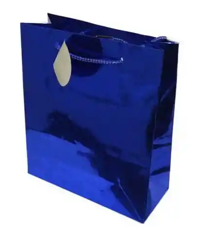Bolsa de regalo metálica color azul talla M (23 cm x 18 cm) de la marca Primavera, elaborada en material resistente con acabado brillante tipo espejo que aporta elegancia y destaca cualquier obsequio ideal para cumpleaños, fechas especiales, detalles corporativos y celebraciones en general.