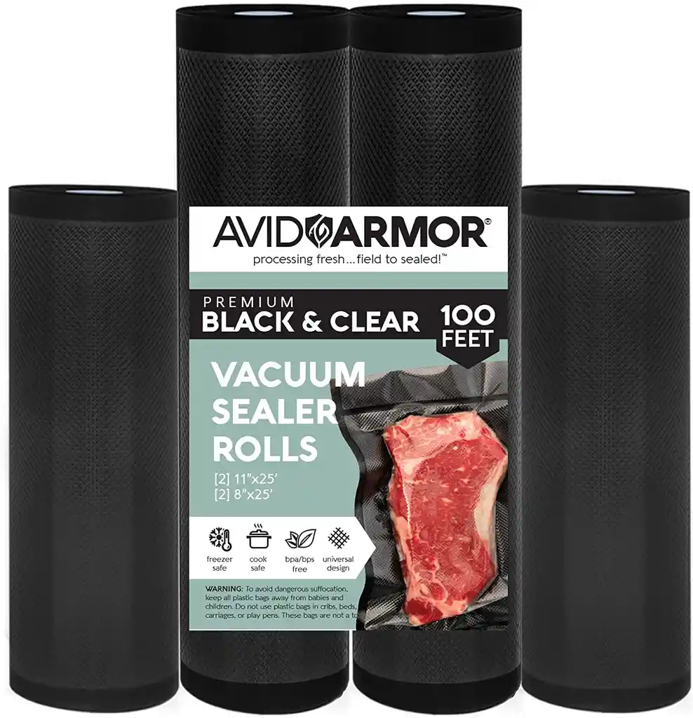 OPCION TRANSPARANTE: Incluye 2 rollos de 20 cm por 15 metros (Total 30 metros) con canales en relieve para aumentar la succión. OPCION UNA CARA COLOR NEGRO: Incluye 2 rollos de 20 cm por 7,5 metros + 2 rollos de 28cm x 7.5 metros (Total 30 metros) con canales en relieve para aumentar la succión. Empaca al vacío con estas bolsas para mantener fresco sin quemaduras por congelación o deshidratación. Diseño sin precortes para que puedas crear tu propia longitud de bolsa. Menos desperdicio de alimentos, ahorra mucho dinero. AUMENTA EL TIEMPO DE ALMACENAMIENTO: 4 – 8 veces más larga vida útil de los alimentos, ya que mantiene la frescura, el sabor y los nutrientes. Bolsas resistentes de 2 capas con canal de extracción de aire en relieve que son estables para el calor y el frío, hervir, congelable, microondas y lavavajillas. Perfecto para cocinar al vacío. Elimina quemaduras en el congelador y la deshidratación para mantener tu comida más fresca, jugosa y sabrosa. MATERIAL SEGURO: sin BPA, duradero, material de calidad alimentaria. No hay problema con el fuego lento y el microondas. Prefecto para el almacenamiento de alimentos, comida seca congelada, Sous Vide, jardinería, hojas de té, documentos y electrónica. Doble sellado para líquidos como sopa, zumo, etc. FUNCIONA CON TODOS LOS SELLADORES AL VACÍO: Funciona con todos los selladores de calor al vacío de succión como Seal A Meal, Nesco, Weston, Cabela'S, Ziploc, Kitchenboss, Geryon y más.