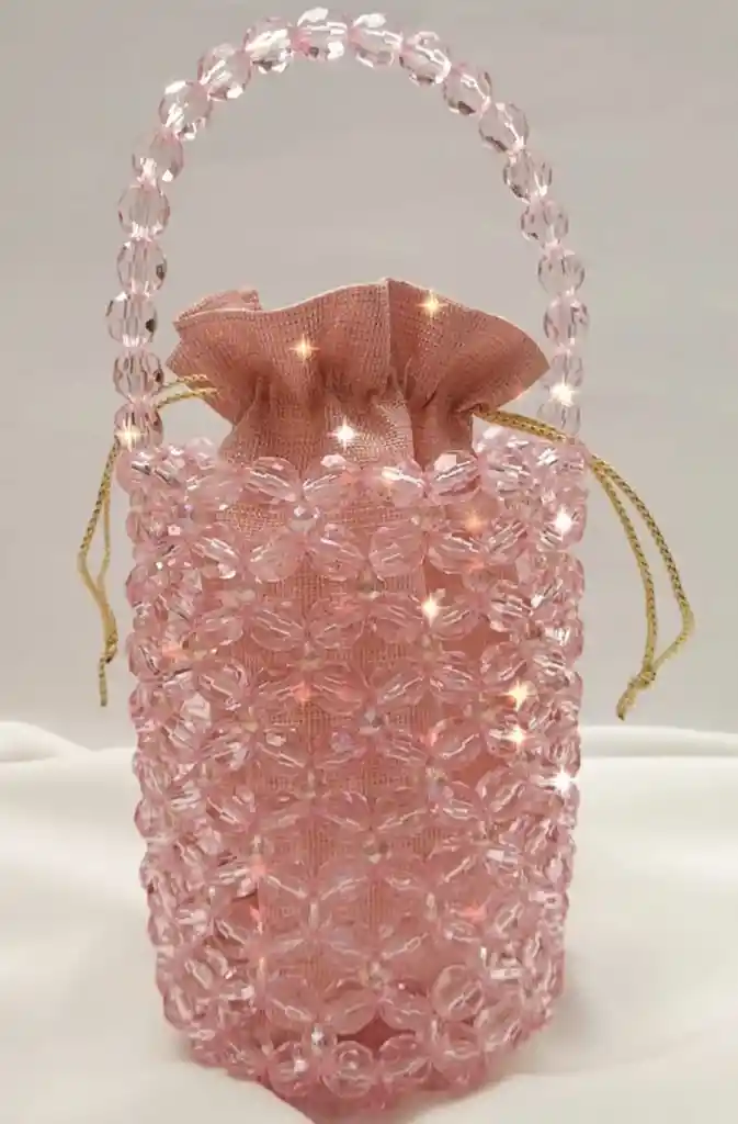 Bolsa para complementar tu estilo, elaborada en Murano acrílico y Murano convencional, bolsa interna en seda.