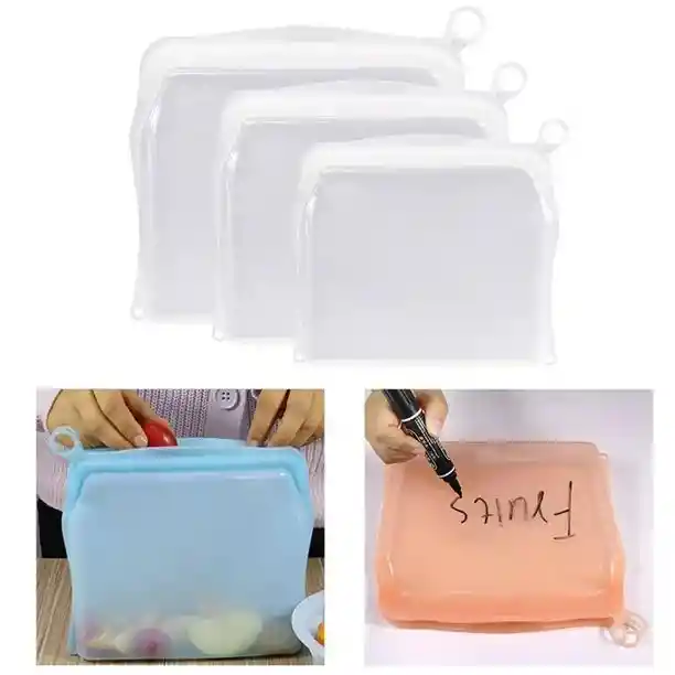 Bolsa de almacenamiento de alimentos de silicona reutilizable 3PCS Bolsa de almacenamiento reutilizable de silicona reutilizable de grado aliment - Claer BLESIY Bolsas de almacenamiento.