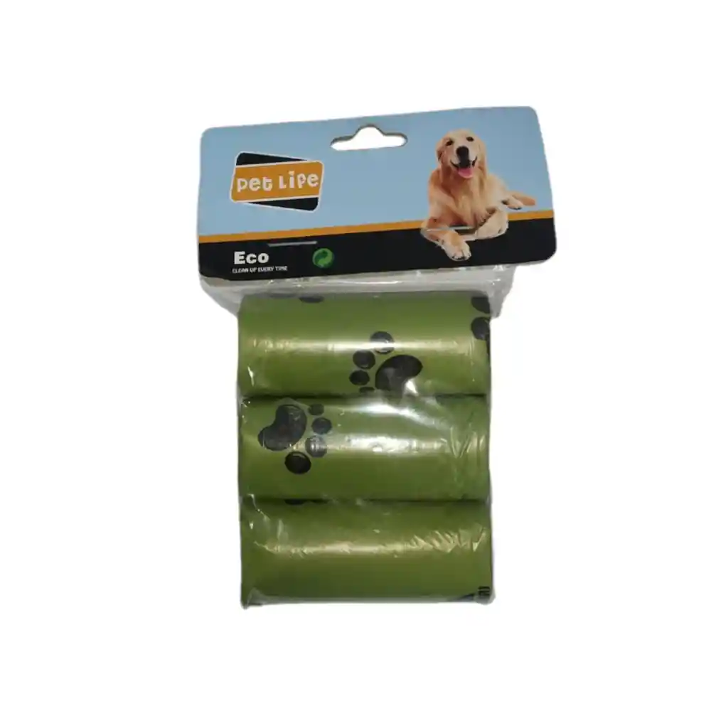 Bolsas biodegradables de colores para recolección de desechos. Cada rollo contiene 15 bolsas.