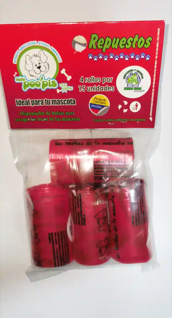 Bolsas para recoger ...... x4 unidades. Color Rojo/Negro.