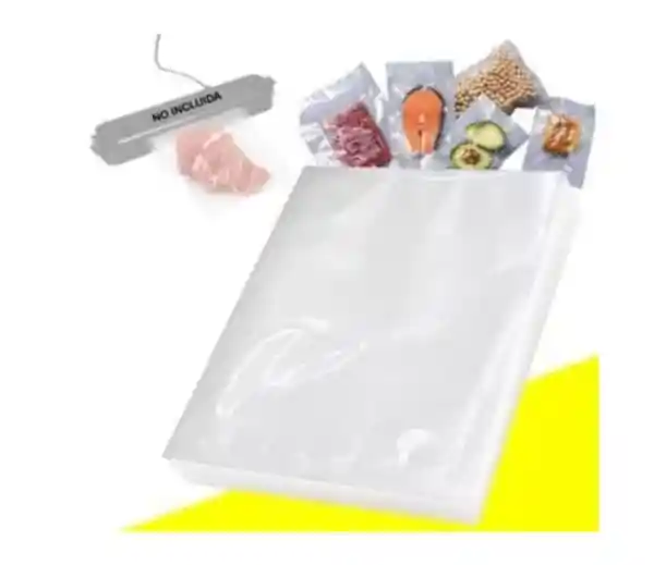 Función: Eliminan el aire dentro de la bolsa para prevenir la descomposición de los alimentos, retrasando el crecimiento de bacterias y la oxidación. Compatibilidad: Diseñadas para ser utilizadas con máquinas empacadoras al vacío caseras. Versatilidad: Ideales para almacenar carnes, pescados, verduras y granos, ayudando a ahorrar espacio en el congelador. Reutilización: Muchas de estas bolsas son lavables y pueden reutilizarse cortando el borde sellado previamente Medida: 25 cm x 18 cm