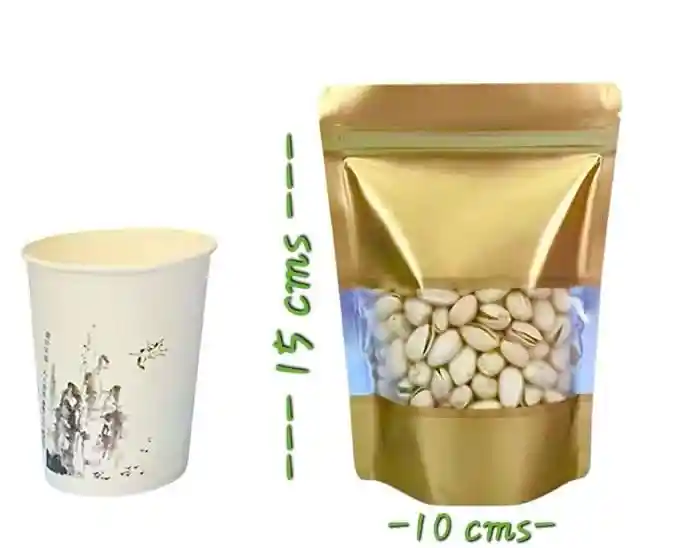 BOLSA 10X15 CMS CON CIERRE BOLSA 10X15 DORADA CON ZIPPER IDEAL PARA GRANOLAS, SEMILLAS