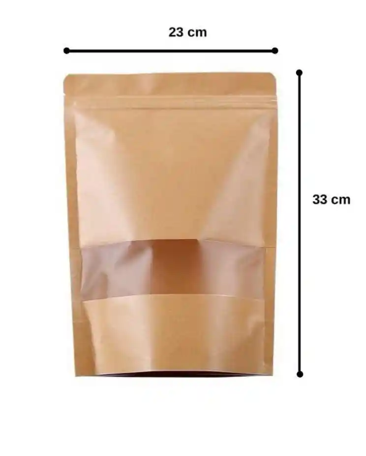 Bolsas Doypack 23X33 Cm Kraft 1200 GR Zipper Ventana