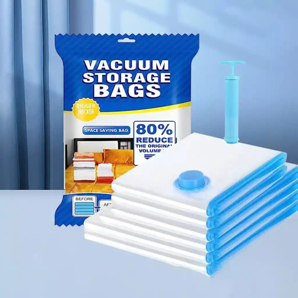 Esta Bolsas Vacío Ropa es perfecta para todas tus necesidades de almacenamiento y te ayudará a reducir el volumen original en un 80%. Son ideales para ahorrar espacio en armarios, garajes, sótanos, maletas, etc. con una bomba manual gratis adecuada para cualquier aspiradora, tanto si está en casa como si en viaje, solo use nuestra bomba de viaje conveniente si necesita reembalar. ¡Su equipaje será nuevamente sellado al vacío! Cremallera doble a prueba de fugas y válvula turbo de triple sellado para sacar eficazmente todo el aire y nada vuelve a entrar, perfecto para almacenamiento a largo plazo. Puedes estar seguro de que estas bolsas de viaje mantendrán tus artículos limpios, compactos y protegidos.