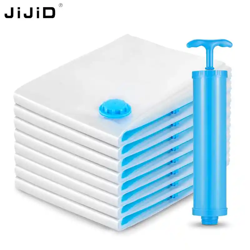 ¡Organiza y conserva tus pertenencias como nunca antes con nuestro pack de bolsas de vacío! Este práctico conjunto te ofrece una solución completa para maximizar el espacio en tu hogar y proteger tus objetos de la humedad, el polvo y los insectos. Con diferentes tamaños para adaptarse a tus necesidades, podrás guardar ropa fuera de temporada, edredones, almohadas, mantas, y mucho más. ¿Qué incluye el pack? 2 unidades de 50 x 70 cm: Ideales para prendas de vestir como abrigos, chaquetas y pantalones. 2 unidades de 60 x 80 cm: Perfectas para edredones individuales o juegos de cama. 1 unidad de 80 x 100 cm: Ideal para edredones matrimoniales, mantas grandes o ropa voluminosa. ¿Por qué elegir nuestras bolsas de vacío? Máxima protección: Al extraer el aire, las bolsas crean un sello hermético que protege tus pertenencias de la humedad, el polvo y los malos olores. Ahorro de espacio: Reduce considerablemente el volumen de tus objetos, liberando espacio en armarios y baúles. Reutilizables: Las bolsas son duraderas y se pueden utilizar varias veces. Fácil de usar: La bomba incluida facilita el proceso de extracción del aire, haciendo que el empaque al vacío sea rápido y sencillo. Versátiles: Perfectas para el hogar, viajes y mudanzas. ¡Beneficios adicionales! Material resistente: Nuestras bolsas están fabricadas con materiales de alta calidad, garantizando su durabilidad. Cierre hermético: El cierre doble asegura un sellado perfecto, evitando fugas de aire. Diseño práctico: Las válvulas de extracción de aire son fáciles de localizar y utilizar. ¡No esperes más para organizar tu hogar de forma eficiente y práctica! Con nuestro pack de bolsas de vacío, podrás disfrutar de un espacio más ordenado y protegido.