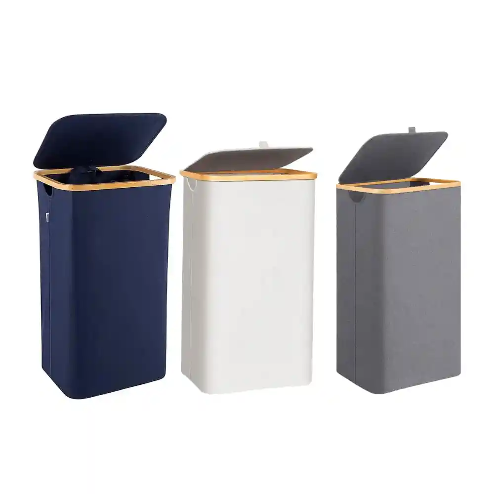 La bolsa para lavandería es la solución perfecta para optimizar el espacio en tu hogar y simplificar tu rutina de lavado. Con un diseño compacto y una capacidad de 100L, esta bolsa se adapta a espacios estrechos, maximizando la organización en tu hogar. Su bolsa interior desmontable, lavable a máquina, facilita la gestión de la ropa sin esfuerzo. Colores Gris – Blanco – Azul Capacidad 100 L Material Tela no tejida – Mango de Bambú – Tapa con forro Extraíble Características Diseño que ahorra espacio: diseñada para espacios estrechos, maximizando el uso del hogar y con una capacidad de 100 litros. Bolsa interior desmontable: incorpora bolsa de malla desmontable para fácil extracción de la ropa. Lavable a máquina, eliminando la necesidad de limpiar toda la cesta. Aspecto elegante: Viene en colores neutros y marco de bambú para un aspecto simple y elegante. Adecuada para dormitorios, baños o lavaderos. Cesta de lavandería con tapa y mango de bambú: la bolsa para lavandería incluye mangos de bambú para transporte conveniente. Además, su tapa superior que evita la entrada de polvo y elimina olores. Cesta de lavandería plegable: es plegable para un almacenamiento compacto (altura de 2 pulgadas cuando está plegada).