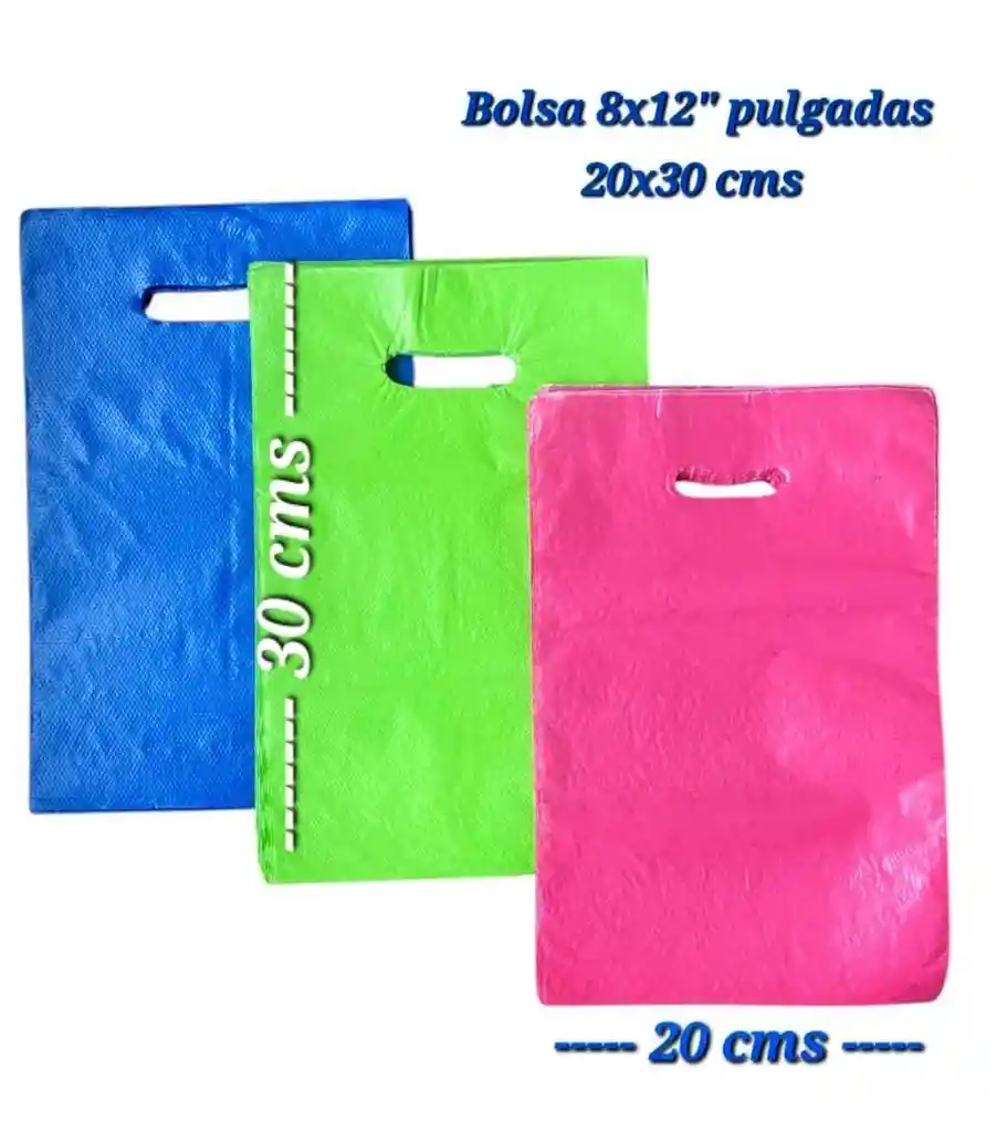 DISPONIBLE EN AZUL, FUCSIA O VERDE POR FAVOR ESPECIFICAR QUE COLOR EN SOLICITUD ESPECIAL BOLSAS DE PRESENTACION 20X30 CMS CON MANIJA TROQUELADA 50 UNDS