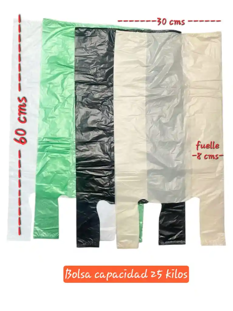 BOLSA PLASTICAS CON MANIJA CAPACIDAD 25 KILOS COLORES DISPONIBLES BEIGE, BLANCA, NEGRA, VERDE