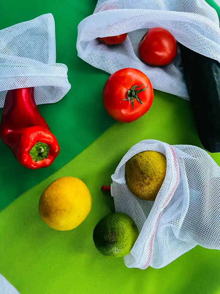 Las bolsas reutilizables son ideales para todos aquellos que buscan una alternativa ecológica y práctica para sus compras en el supermercado. Este set de 4 bolsas reutilizables confeccionadas en malla poliéster son resistentes, duraderas y permiten mantener siempre frescas tus frutas y verduras. *Grande (1): 41cm*29cm, resiste 2.5 kilos *Mediana (1): 30cm*24cm, resiste 1.5 kilos *Pequeña (1): 23cm*20cm, resiste 1 kilo *Mini (1): 19cm*16cm, resiste 1 libra Cada una de las bolsas cuenta con un sistema de cierre con cordón y accesorio para evitar que se abra la bolsa. Su fácil lavado y secado las convierten en una excelente y práctica opción para el día a día. Perfectas para almacenar frutas, verduras y tubérculos fuera y dentro de la nevera. ¡Nuestro planeta nos necesita, seamos parte del cambio! #Nomásplastico