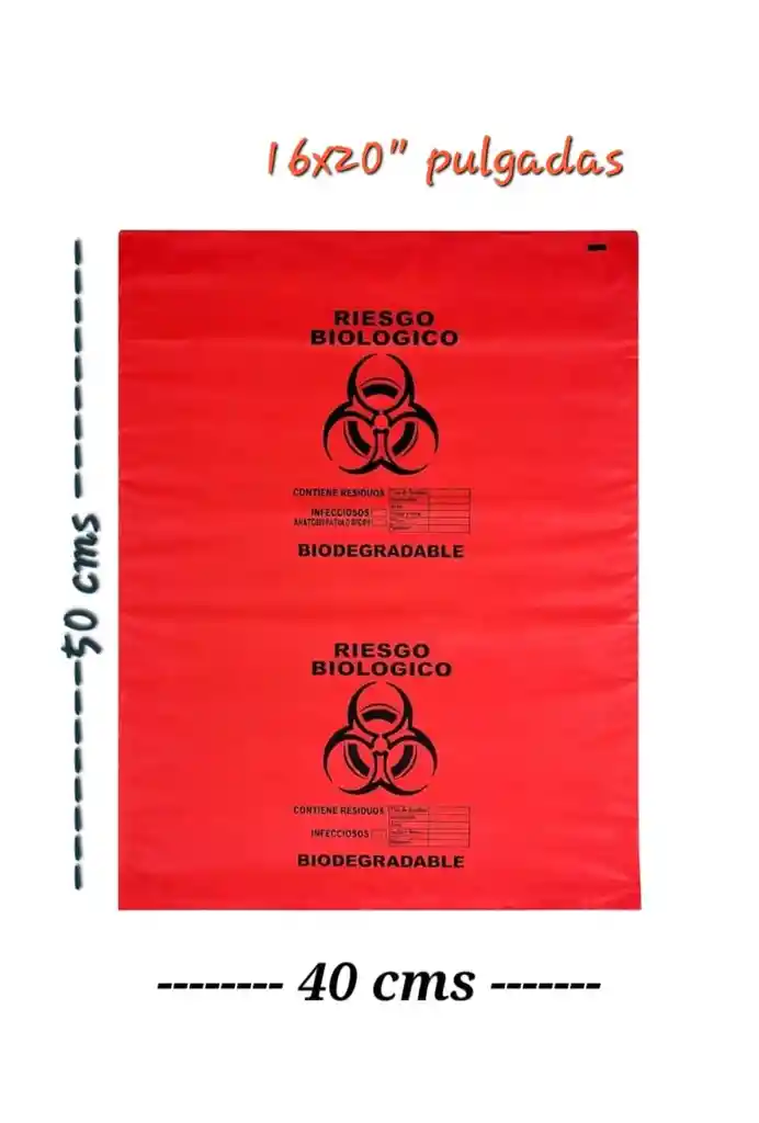 BOLSA PARA BASURA ROJA RIESGO BIOLÓGICO 40 CMS DE ANCHO X 50 CMS DE LARGOPAQ X 50 UNDS
