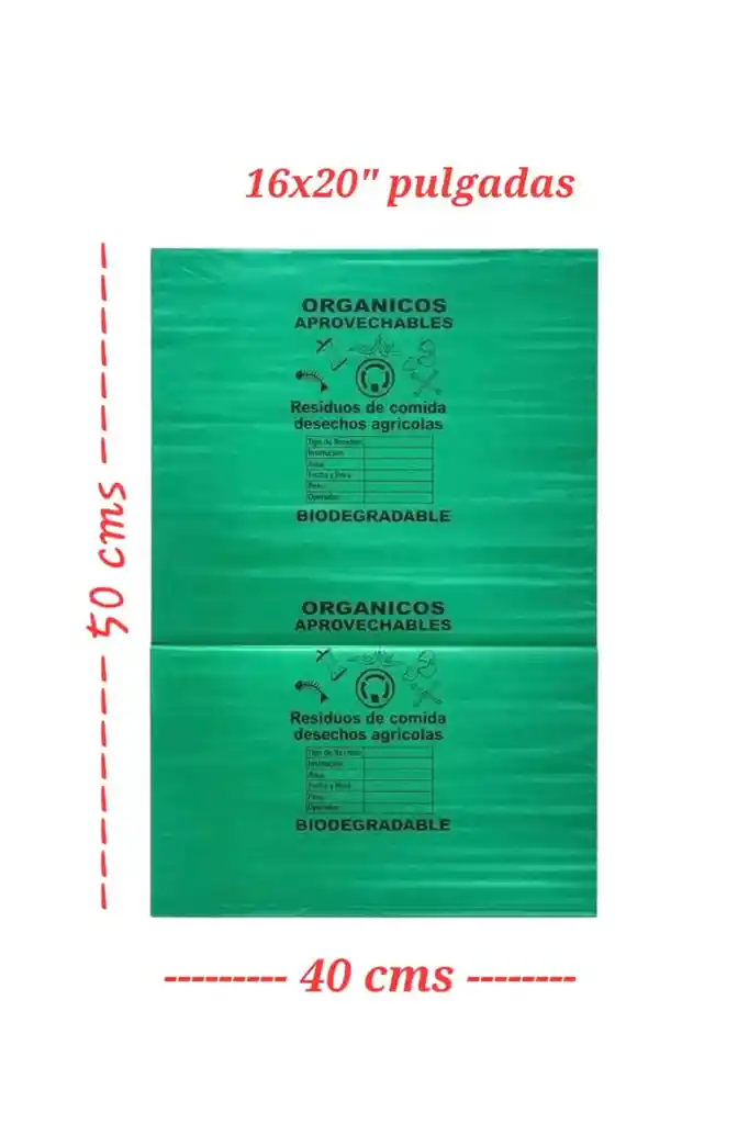 BOLSAS VERDES PEQUEÑAS 40 CMS DE ANCHO X 50 CMS DE LARGO