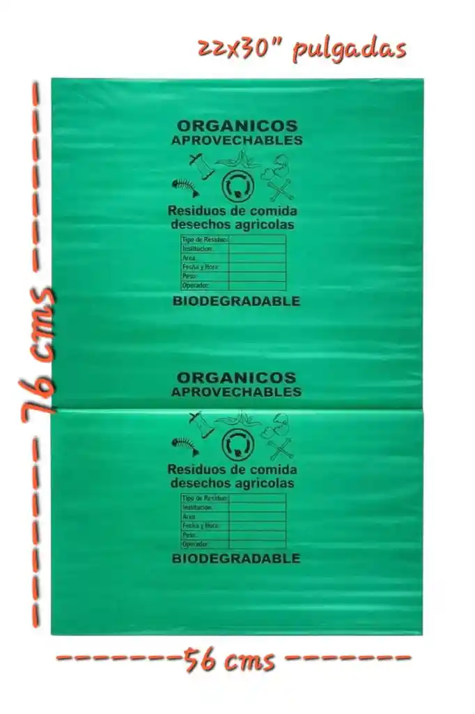 BOLSA VERDE 22X30" (56X76 CMS) PAQUETES POR 50 UNDS. BOLSAS ROTULADAS Y BIODEGRADABLES