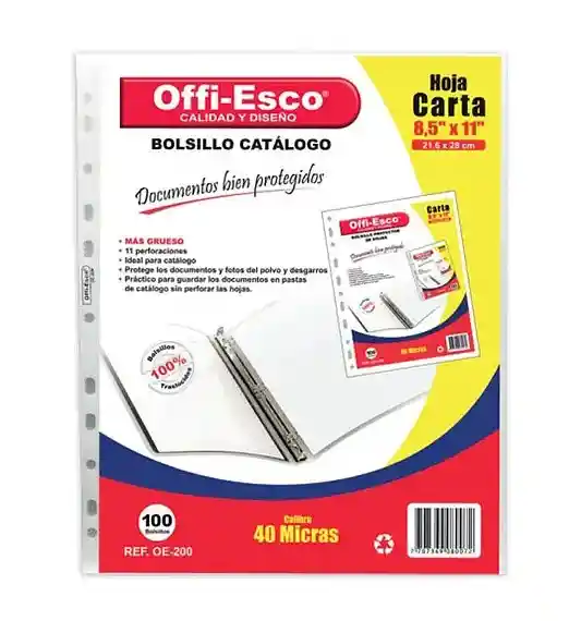 11 perforaciones -Ideal para catalogo Protege los documentos del polvo y desgarro Práctico para guardar los documentos en pastas de catálogo sin perforar las hojas. Medidas: 21.6 X 28 CM