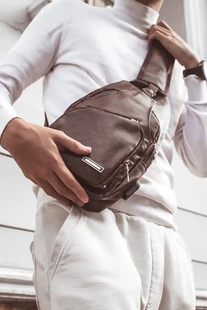 * Cuero PU * Importado * Repelente al agua y liviano * Vintage de lujo * 1 Bolsillo principal * 2 Bolsillos con cremallera * 1 Capa intermedia con capacidad para meter una tablet. * Multifuncional con capacidad de carga para el celular conexión usb rapida modo de uso, conectando una fuente electrica como un cargador portatil, * Incluye cable de carga y orificio para facil conexión.