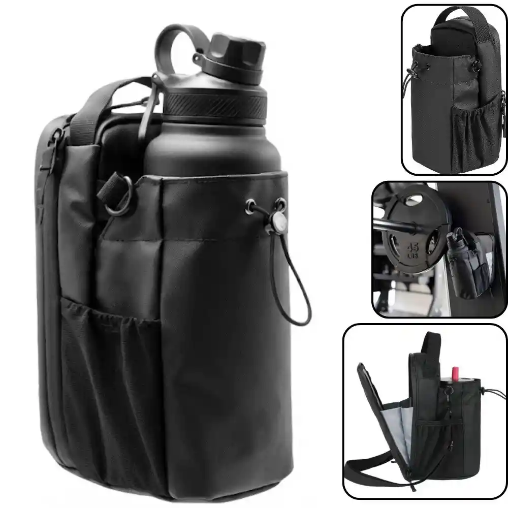 Bolso Canguro Organizador Magnetico Para Gimnasio Riñonera Para Termo Gym ¡Dile adiós a dejar tus cosas en el suelo del gimnasio! Este innovador bolso magnético es el compañero de entrenamiento definitivo, diseñado para mantener tu hidratación, teléfono y llaves seguros, limpios y siempre a tu alcance mientras te ejercitas. Características: - Fijación magnética: Equipado con un sistema de imanes fuertes en la parte posterior que se adhiere firmemente a cualquier superficie metálica, como máquinas de gimnasio, racks de sentadillas o postes estructurales, manteniendo tus pertenencias seguras. - Gran capacidad: El compartimento principal es amplio y está diseñado para alojar botellas de agua, termos o "shakers" de proteína. Cuenta con un cordón ajustable con tope para asegurar la botella. - Organización Inteligente: *Bolsillo Frontal: Perfecto para alojar tu botella de hidratación. *Bolsillo con Cremallera: Ideal para guardar objetos de valor pequeños como llaves, auriculares, teléfono, tarjetas o dinero, manteniéndolos seguros. - Portabilidad: Su diseño ligero te permite despegarlo y llevarlo contigo de una máquina a otra en segundos.