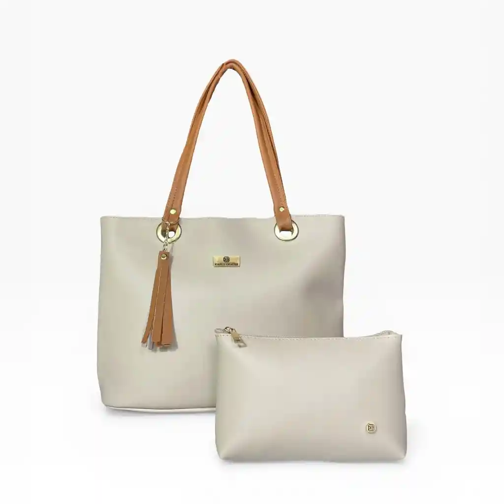 Espacio, organización y ese toque de elegancia que no pasa desapercibido. Compartimento principal con cremallera, bolsillos internos y trasero con cierre, cosmetiquera incluida, y asas para llevar en el hombro. En cuero sintético premium. Disponible en Negro con Miel, Beige con Miel y Negro Unicolor. Organización: Compartimento principal con cremallera Bolsillo interno con cierre para tus esenciales más importantes Bolsillo trasero con cierre para acceso rápido Forro interno resistente Cosmetiquera a juego incluida Comodidad real: Asas largas para uso en hombro Medidas: 34 cm de largo · 26 cm de alto · 9 cm de ancho Material: Sintético de alta calidad — suave al tacto, duradero en el tiempo.