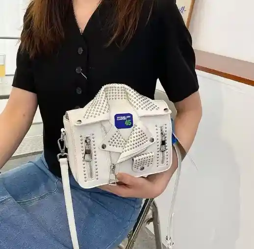 Bolso manos libres para dama en color blanco Material: Cuero sintético pu Medidas/ Largo 21cm - Alto: 14cm