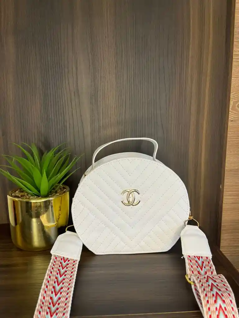 Eleva tu look con este bolso circular blanco, con doble cierre