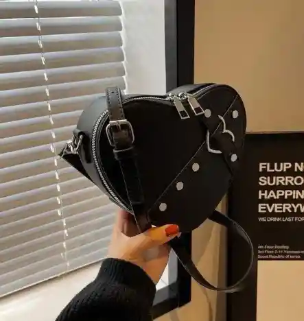 Bolso manos libres para dama en color negro Material: Cuero sintético pu Medidas/ Largo 17cm - Alto: 15cm