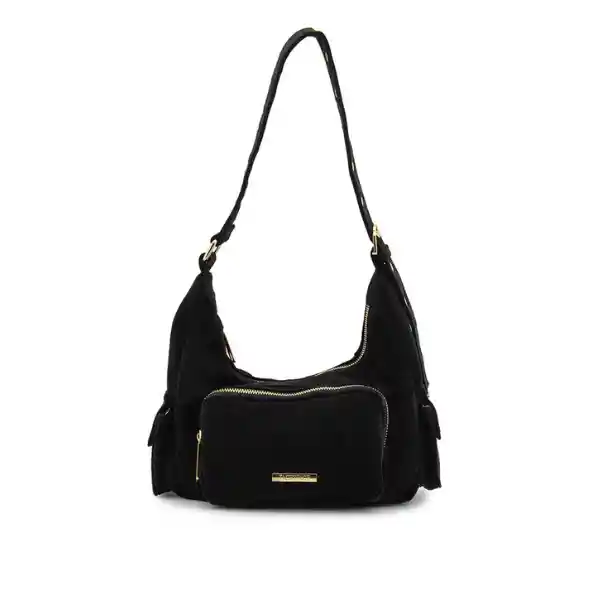 Bolso de hombro con forma de media luna, bolsillo frontal y bolsillos laterales, Incluye una correa ancha reforzada con detalles de ojetes metálicos, que permite regular el largo para llevarlo cómodamente al hombro. Elaborado en sintetico tipo gamuza con forro interno en tela, bolsillo monedero y herrajes metalicos dorados,garantía de 3 meses directamente con el vendedor en cierres, herrajes y costuras