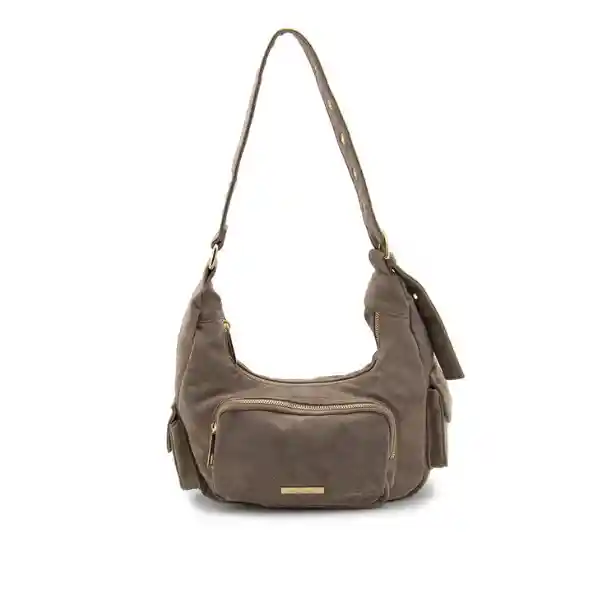Bolso de hombro con forma de media luna, bolsillo frontal y bolsillos laterales, Incluye una correa ancha reforzada con detalles de ojetes metálicos, que permite regular el largo para llevarlo cómodamente al hombro. Elaborado en sintetico tipo gamuza con forro interno en tela, bolsillo monedero y herrajes metalicos dorados,garantía de 3 meses directamente con el vendedor en cierres, herrajes y costuras