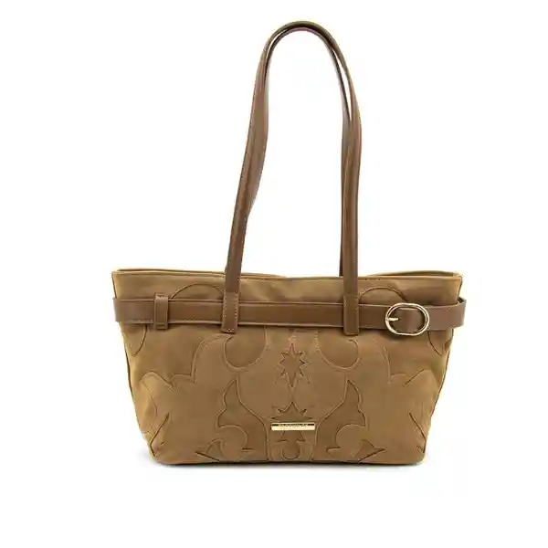 bolso de hombro con correa superior y bordados decorativos en relieve con placa delantera de la marca dorada, Incluye correa decorativa tipo cinturón con hebilla dorada circular, elaborado en sintetico tipo gamuza con forro interno en tela, bolsillo monedero y herrajes metalicos dorados,garantía de 3 meses directamente con el vendedor en cierres, herrajes y costuras