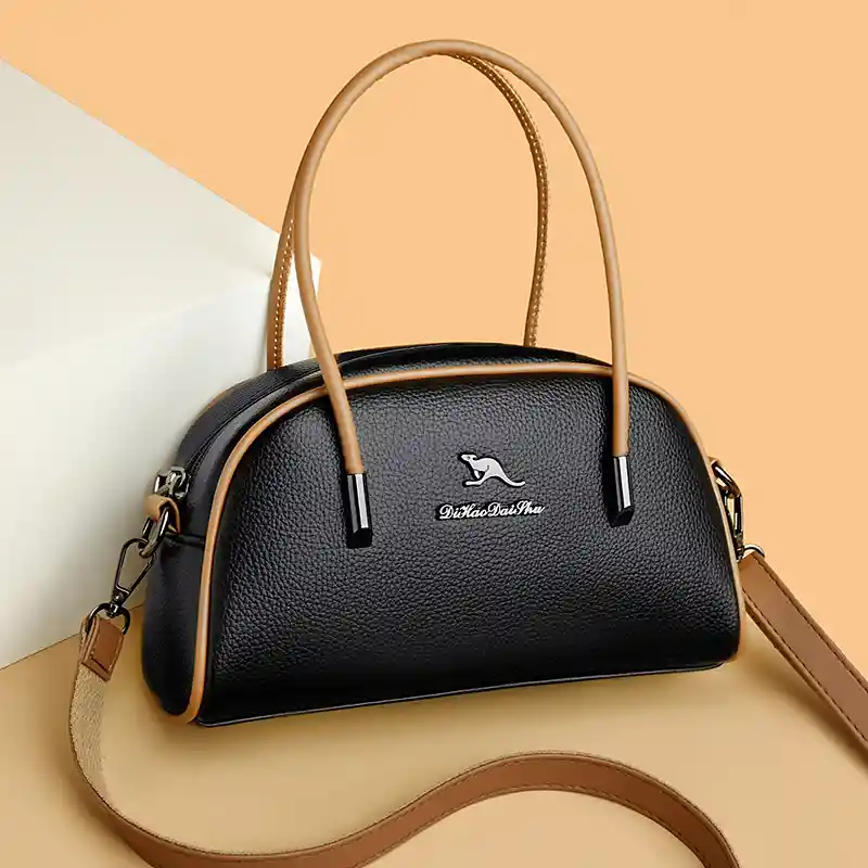 Posee un bolsillo principal con cierre de cremallera, con bolsillos organizadores en su interior cuenta con correas de mano y de hombro, perfecto para llevar tus pertenencias de uso diario 15 cm ancho 14 cm alto color: negro cafe material: cuerina