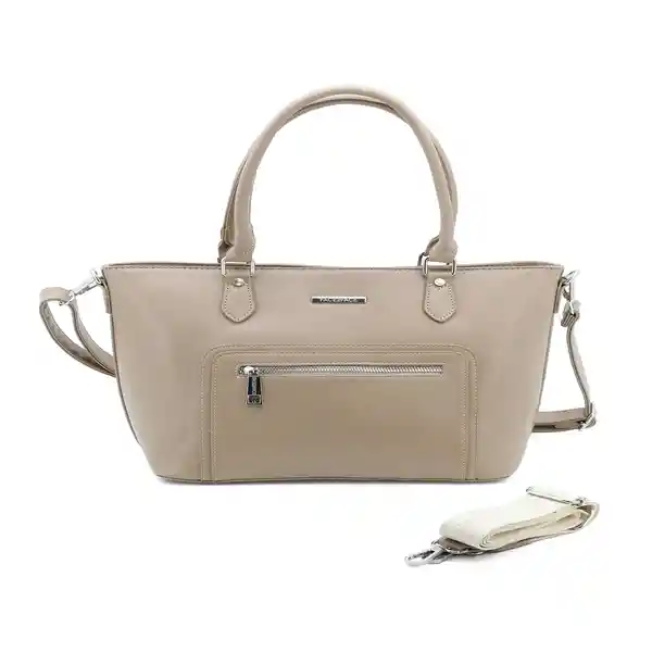 Bolso de mano con cierre frontal y Charm decorativo, Cuenta con doble asa de mano y correa ajustable y removible para usarlo también como bandolera y con bolsillo trasero con cremallera, elaborado en sintetico con forro interno en tela, bolsillo monedero y herrajes metalicos plateados,Garantía de 3 meses directamente con el vendedor en cierres, herrajes y costuras,